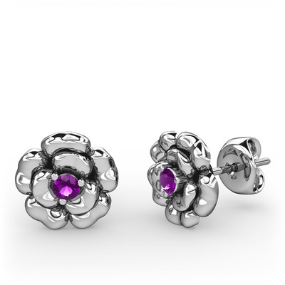 Ametist 8 ayar beyaz altın küpe