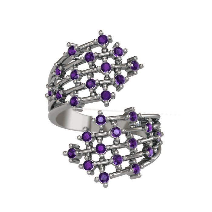 Ametist 18 ayar beyaz altın yüzük