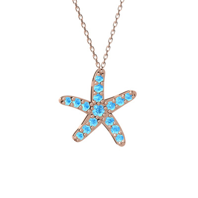 Akuamarin 18 ayar rose altın kolye (40 cm rose altın rolo zincir)