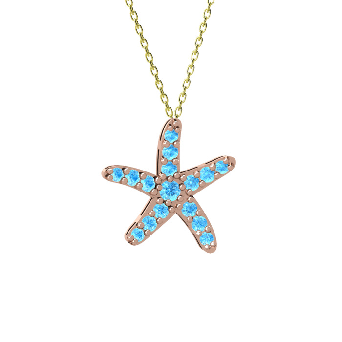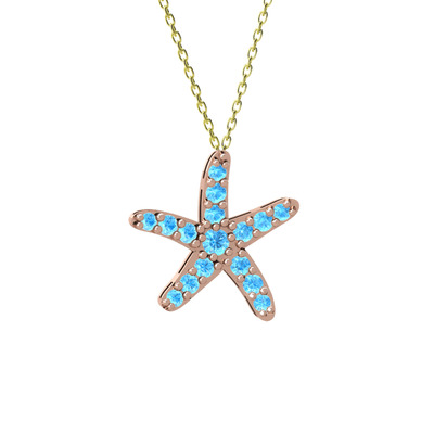 Akuamarin 925 ayar rose altın kaplama gümüş kolye (40 cm altın rolo zincir)