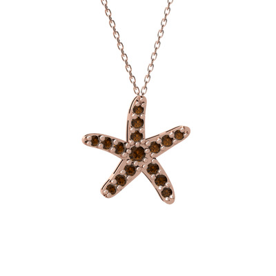 Dumanlı kuvars 18 ayar rose altın kolye (40 cm rose altın rolo zincir)