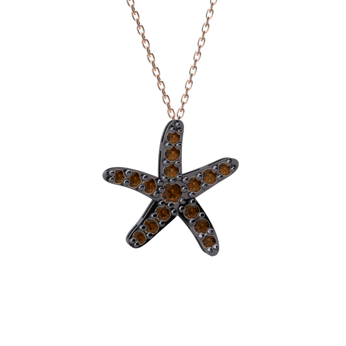 Dumanlı kuvars 925 ayar siyah rodyum kaplama gümüş kolye (40 cm rose altın rolo zincir)