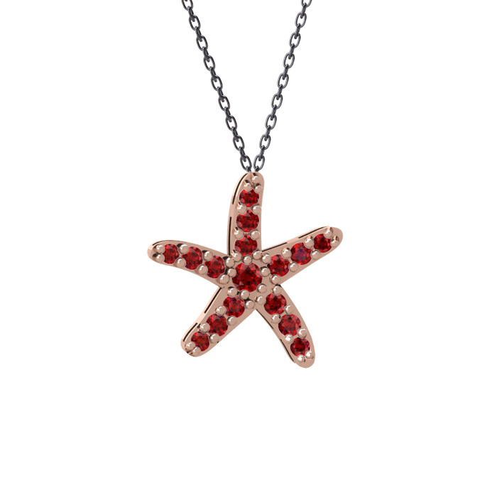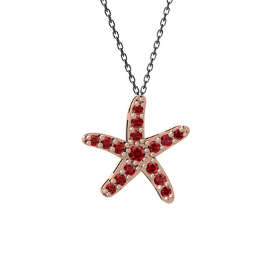 Garnet 14 ayar rose altın kolye (40 cm gümüş rolo zincir)