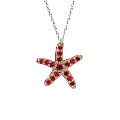 Garnet 925 ayar rose altın kaplama gümüş kolye (40 cm beyaz altın rolo zincir)