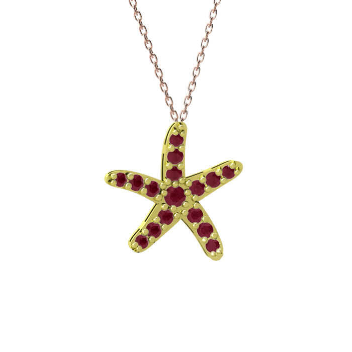 Kök yakut 14 ayar altın kolye (40 cm rose altın rolo zincir)