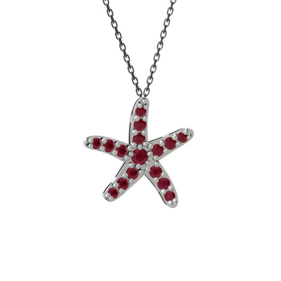 Kök yakut 14 ayar beyaz altın kolye (40 cm gümüş rolo zincir)