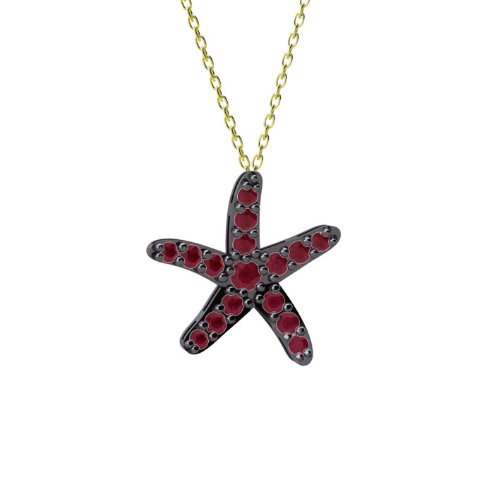 Kök yakut 925 ayar siyah rodyum kaplama gümüş kolye (40 cm altın rolo zincir)
