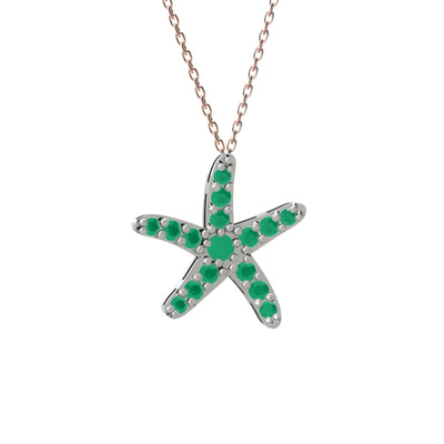Kök zümrüt 18 ayar beyaz altın kolye (40 cm rose altın rolo zincir)