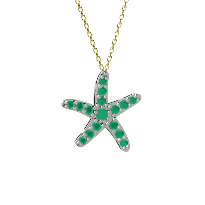 Kök zümrüt 8 ayar beyaz altın kolye (40 cm gümüş rolo zincir)