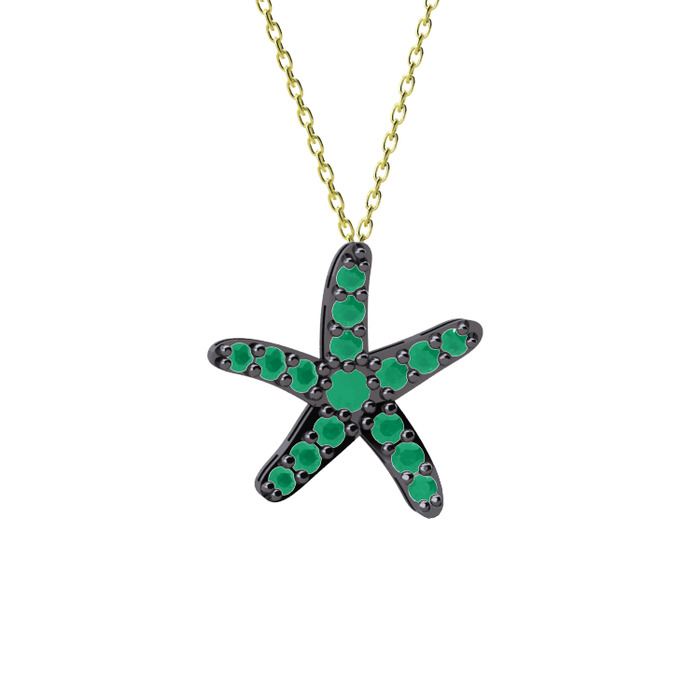 Kök zümrüt 925 ayar siyah rodyum kaplama gümüş kolye (40 cm gümüş rolo zincir)