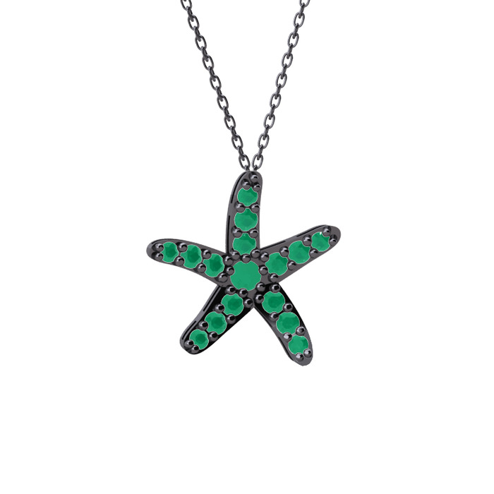 Kök zümrüt 925 ayar siyah rodyum kaplama gümüş kolye (40 cm gümüş rolo zincir)