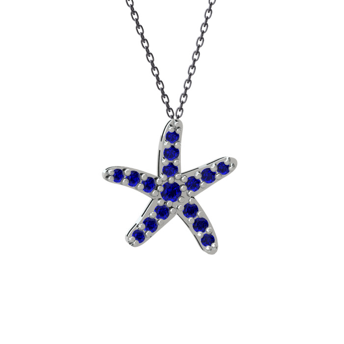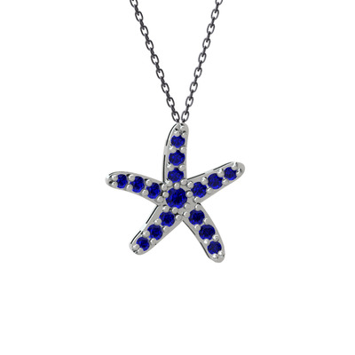 Lab safir 18 ayar beyaz altın kolye (40 cm gümüş rolo zincir)