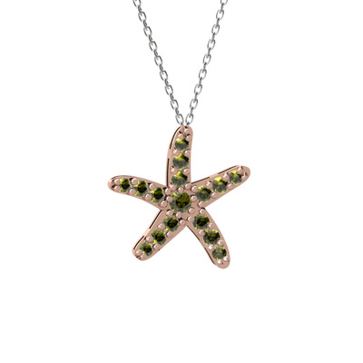 Peridot 14 ayar rose altın kolye (40 cm beyaz altın rolo zincir)