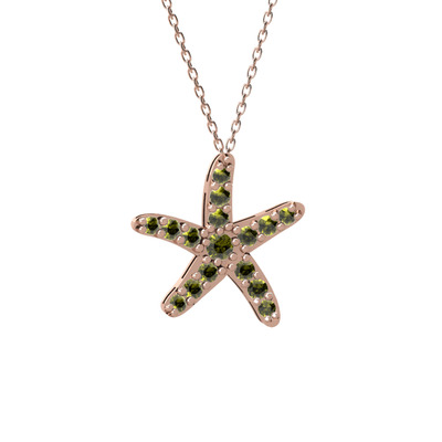 Peridot 14 ayar rose altın kolye (40 cm rose altın rolo zincir)