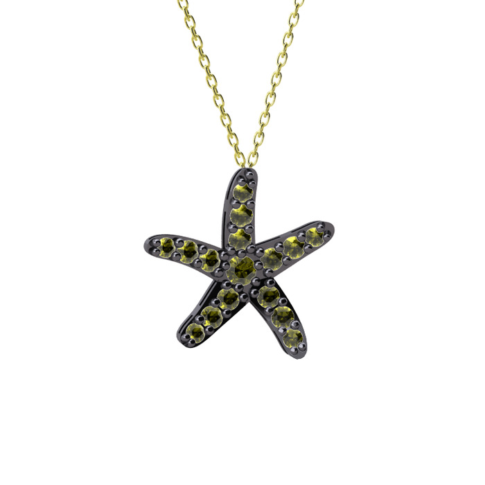 Peridot 925 ayar siyah rodyum kaplama gümüş kolye (40 cm altın rolo zincir)