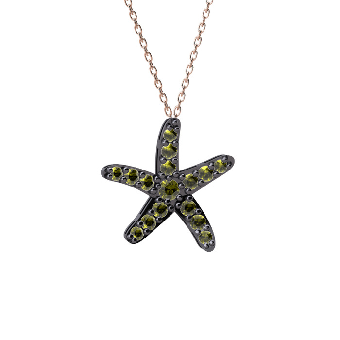 Peridot 925 ayar siyah rodyum kaplama gümüş kolye (40 cm gümüş rolo zincir)