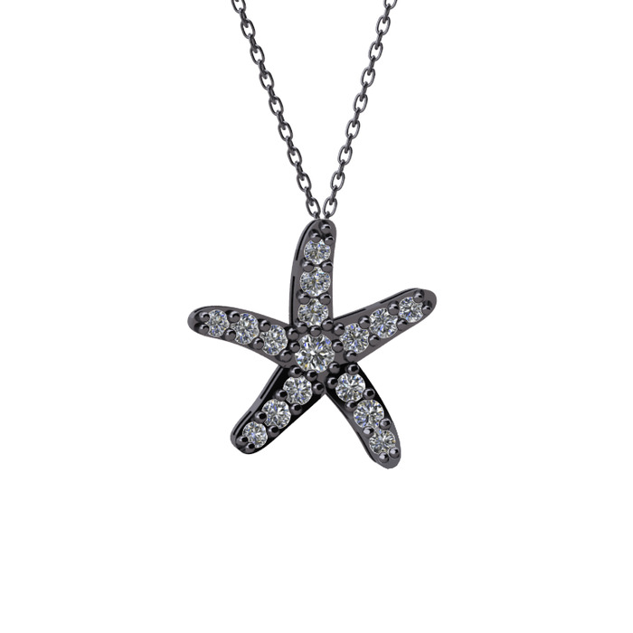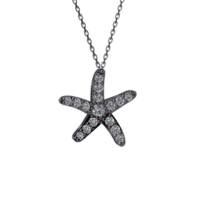 Pırlanta 925 ayar siyah rodyum kaplama gümüş kolye (0.32 karat, 40 cm gümüş rolo zincir)