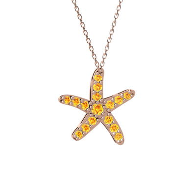 Sitrin 14 ayar rose altın kolye (40 cm rose altın rolo zincir)