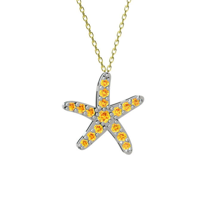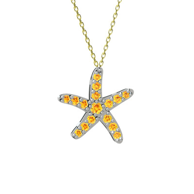 Sitrin 8 ayar beyaz altın kolye (40 cm altın rolo zincir)
