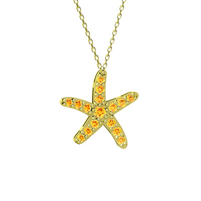 Sitrin 925 ayar altın kaplama gümüş kolye (40 cm altın rolo zincir)