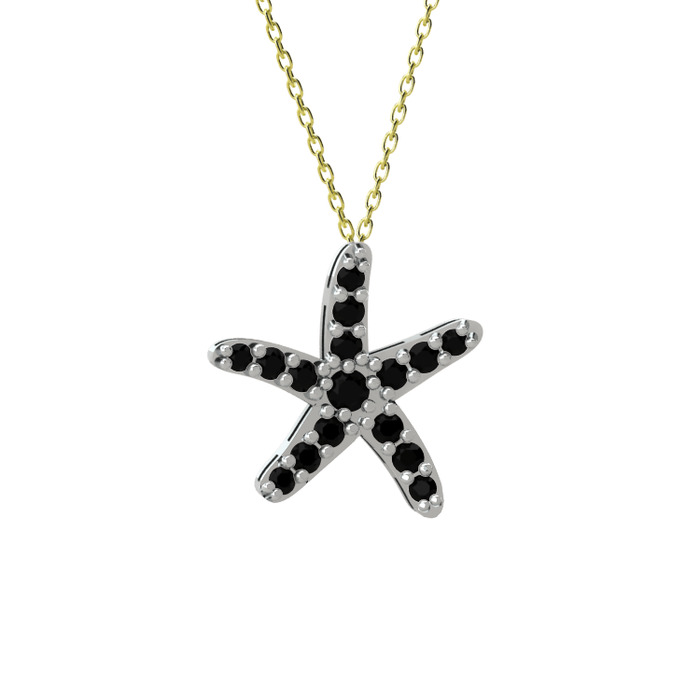 Siyah zirkon 925 ayar gümüş kolye (40 cm altın rolo zincir)