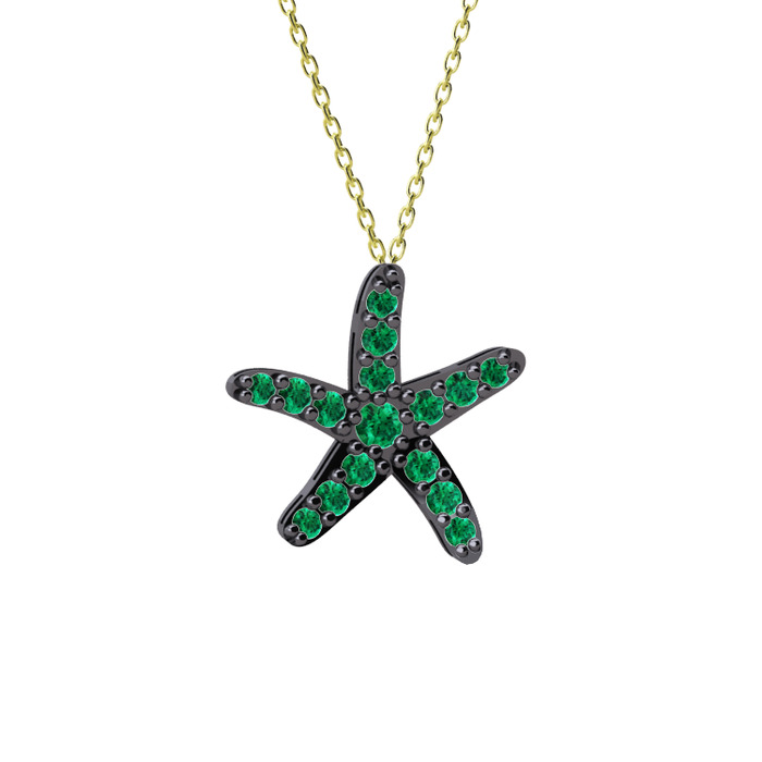 Yeşil kuvars 925 ayar siyah rodyum kaplama gümüş kolye (40 cm altın rolo zincir)