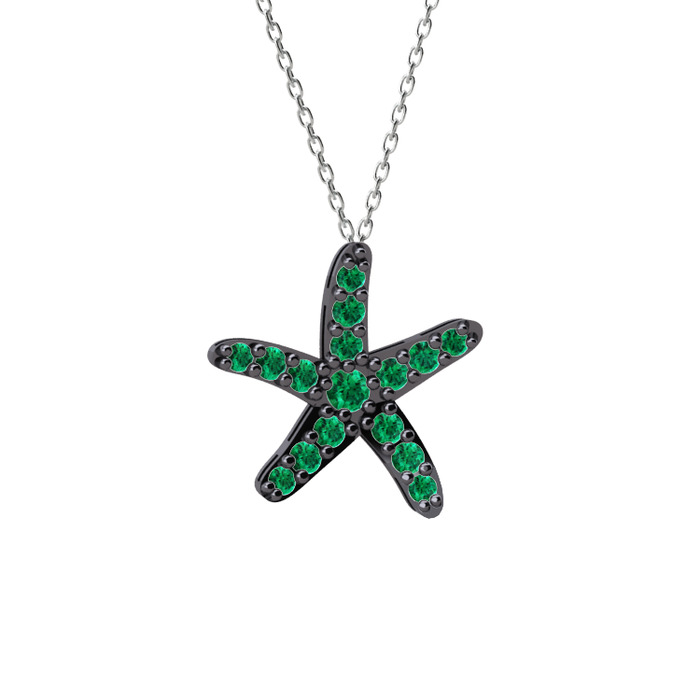 Yeşil kuvars 925 ayar siyah rodyum kaplama gümüş kolye (40 cm gümüş rolo zincir)