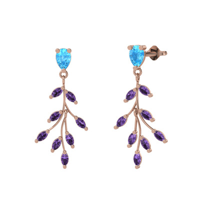 Akuamarin ve ametist 18 ayar rose altın küpe