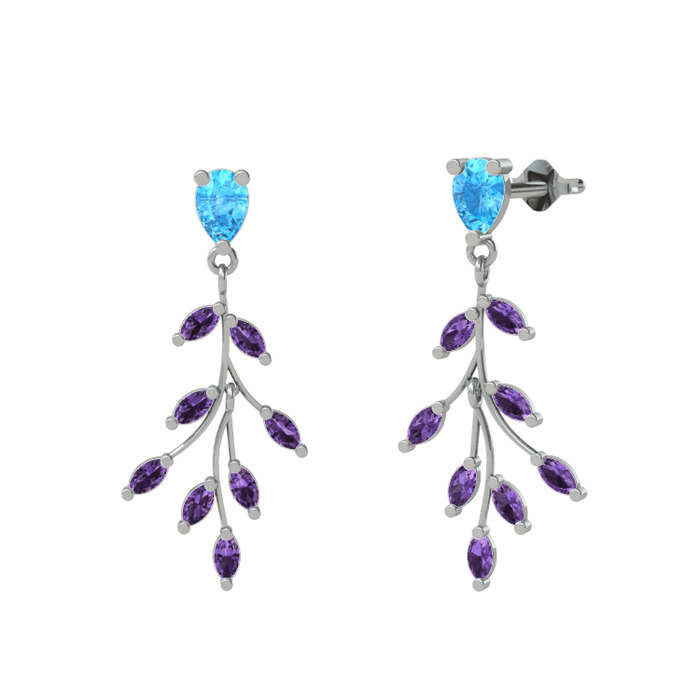 Akuamarin ve ametist 925 ayar gümüş küpe