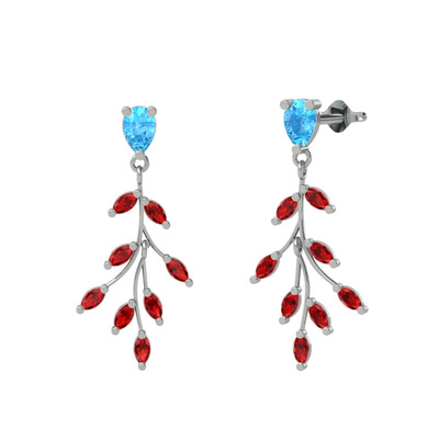 Akuamarin ve garnet 8 ayar beyaz altın küpe