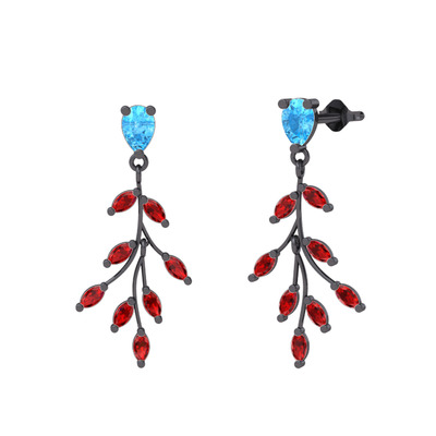 Akuamarin ve garnet 925 ayar siyah rodyum kaplama gümüş küpe