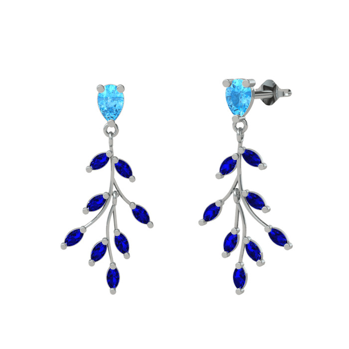 Akuamarin ve lab safir 8 ayar beyaz altın küpe