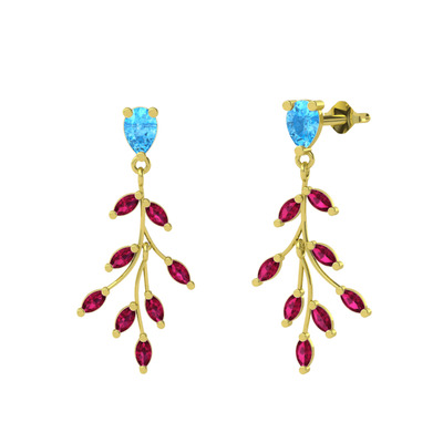 Akuamarin ve rodolit garnet 14 ayar altın küpe
