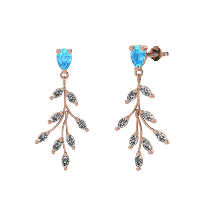 Akuamarin ve swarovski 18 ayar rose altın küpe