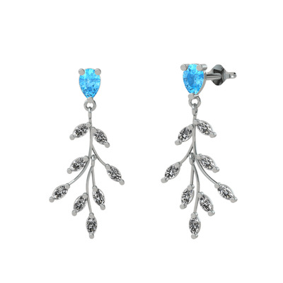 Akuamarin ve swarovski 8 ayar beyaz altın küpe