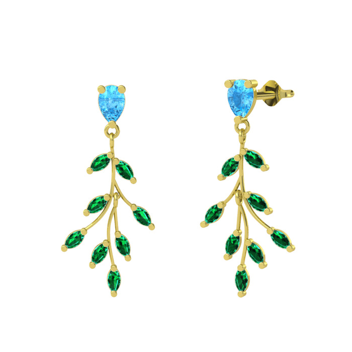 Akuamarin ve yeşil kuvars 18 ayar altın küpe