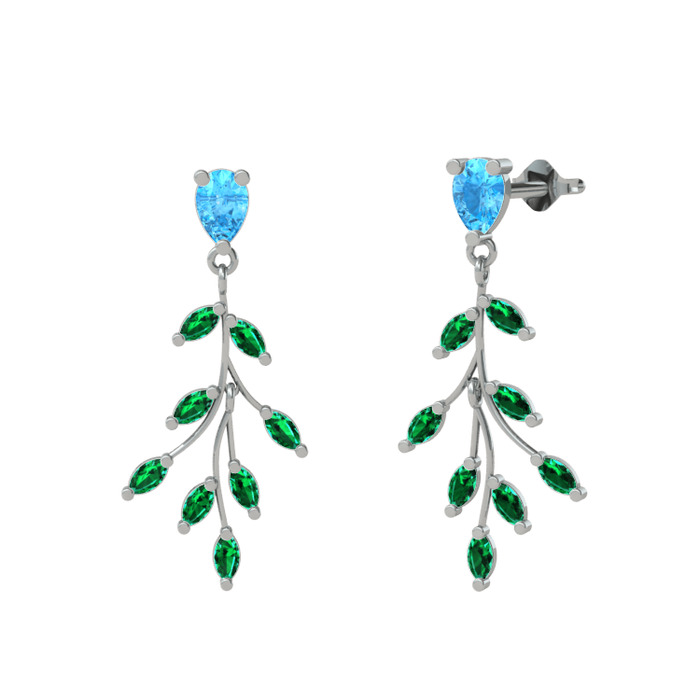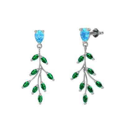 Akuamarin ve yeşil kuvars 925 ayar gümüş küpe