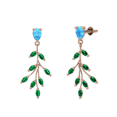 Akuamarin ve yeşil kuvars 925 ayar rose altın kaplama gümüş küpe