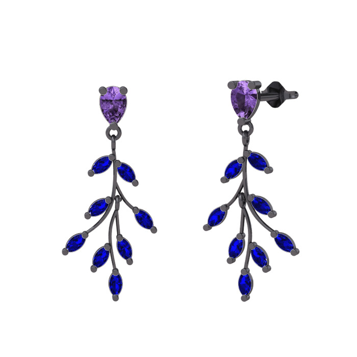 Ametist ve lab safir 925 ayar siyah rodyum kaplama gümüş küpe
