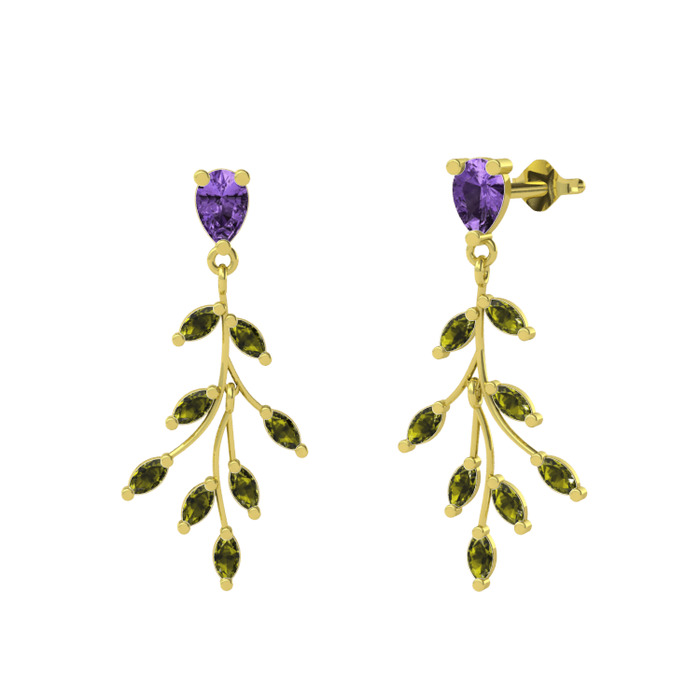 Ametist ve peridot 925 ayar altın kaplama gümüş küpe