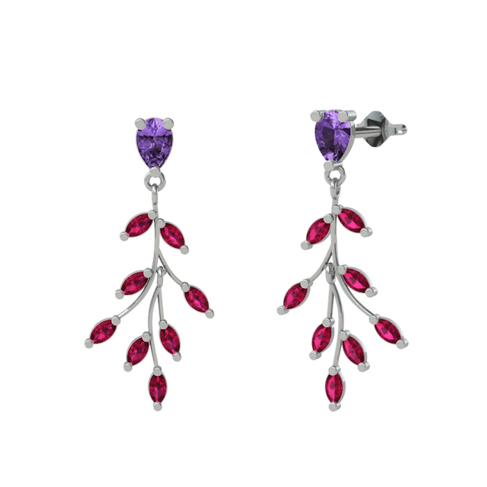 Ametist ve rodolit garnet 18 ayar beyaz altın küpe