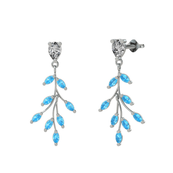 Beyaz zirkon ve akuamarin 14 ayar beyaz altın küpe