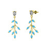 Dentale Yaprak Küpe - Beyaz zirkon ve akuamarin 8 ayar altın küpe