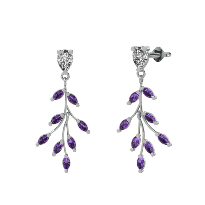 Beyaz zirkon ve ametist 14 ayar beyaz altın küpe
