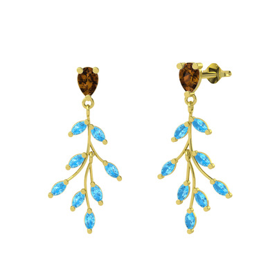 Dumanlı kuvars ve akuamarin 14 ayar altın küpe