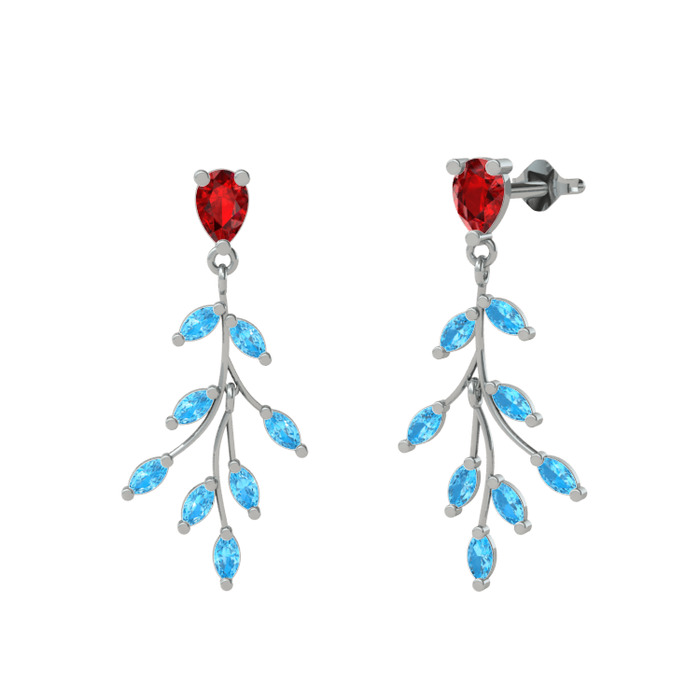 Garnet ve akuamarin 14 ayar beyaz altın küpe
