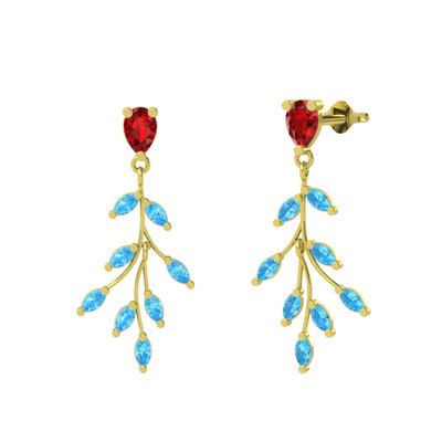 Garnet ve akuamarin 8 ayar altın küpe