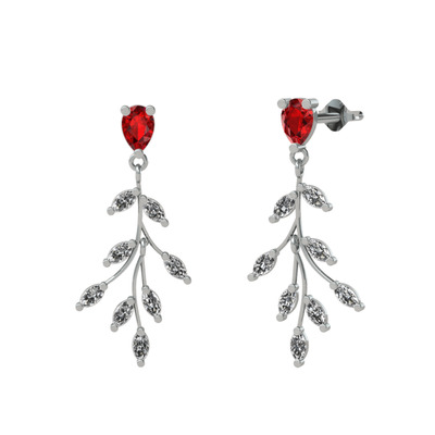 Garnet ve beyaz zirkon 925 ayar gümüş küpe