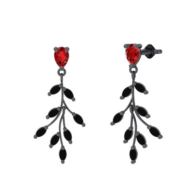 Garnet ve siyah zirkon 925 ayar siyah rodyum kaplama gümüş küpe
