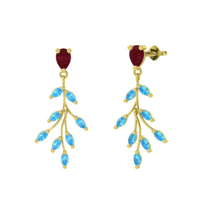 Kök yakut ve akuamarin 14 ayar altın küpe